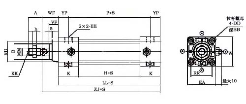 | Note :(1) QGBQ - K series cylinder in the middle position outfit switch, cylinder maximum speed should be in 300 mm/SEC of less than, make the apparatus and load sensitivity is the largest, work in good condition. (2) the cylinder beyond maximum stroke, users may contact the special manufacturing. |